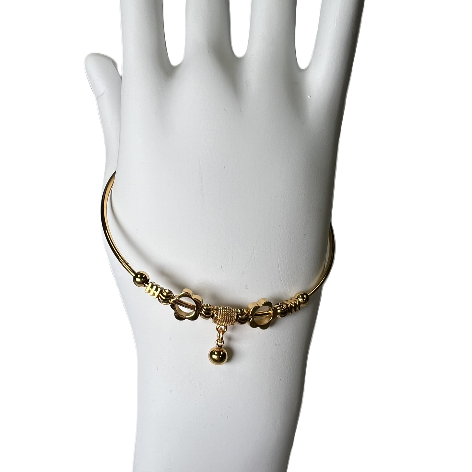 Braclet Bangle "Pyrite" with Flower and Ball hanging
